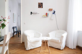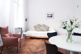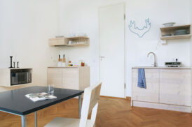 Die vier Ferienwohnungen sind Teil der großzügigen Gesamtarchitektur des Gutshauses. Das Interieur- und Möbeldesign ist klar und einladend zugleich. Jeder der Räume bietet einen besonderen Ausblick auf den Park.