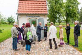 Das ehemalige Trafohaus ist heute Ausstellungsraum und Herzstück der neu angelegten Gartenanlage, die zum Flanieren und Verweilen einlädt. Die Sonne strahlt ab mittags bis zu ihrem Untergang auf die großzügige Terrasse. Von hieraus wandert der Blick in die Weite der Mecklenburg-Vorpommerschen Landschaft.