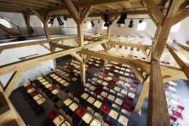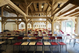 So sind großzügige, moderne, lichtdurchflutete Räume entstanden, die auch einzeln mietbar sind und somit für die unterschiedlichsten Anlässe von bis zu 200 Personen den idealen Rahmen bieten. Im ehemaligen Kornspeicher wird konzertiert und in großer Runde gefeiert. Der hohe offene Spitzgiebel verleiht dem kleinen historischen Gebäude einen besonderen Charakter, der es dazu prädestiniert hat, Trauraum zu werden. In Verbindung mit dem modernen Anbau und dem dazugehörigen Schankraum bietet es sich für kleinere Gesellschaften an. Der große Kamin lädt gerade in der dunklen Jahreszeit zu geselligen Runden vor dem prasselndem Feuer ein.