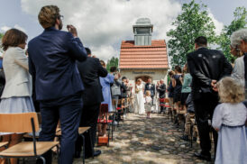 Hier können Sie Ihr Hochzeitswochenende am Vorabend der Trauung mit einem geselligen Get-together einläuten: ein zünftiger Grillabend auf der Terrasse oder ein herzhaftes Essen im alten Speicher. Zusammen mit Ihren engsten Freunden und Verwandten übernachten Sie im Gutshaus, wo Sie bei allem feierlichen Trubel die Ruhe genießen können. Ab Ende 2019 stehen Ihren Gästen in den ehemaligen Pferdestallungen und der alten Remise weitere Hotelzimmer zur Verfügung. Darüber hinaus gibt es in der Umgebung zusätzliche Übernachtungsmöglichkeiten. Unsere Standesbeamtin oder ein freier Redner traut Sie - je nach Wunsch - in unserem Trauraum oder unter freiem Himmel. Das alte Trafohaus könnte zu Ihrer ganz privaten „Hochzeitskapelle“ werden. Alternativ heiraten Sie in der nahen St. Thomas Kirche in Tribsees oder einer anderen der landestypischen Backsteinkirchen und kommen zum Anschneiden der Hochzeitstorte wieder nach Landsdorf.